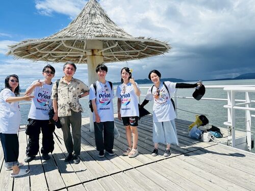 蛭川研究室学部三年生のゼミ生と沖縄(本島・石垣島)に研修旅行に行ってきました。沖縄ゼミ旅行は2004年度、初年度入学以来、三回目です。 石垣島最西端フサキ・ビーチで記念写真(アルコール飲料の使用を推奨する意図はありません) 水平線の彼方には西表…